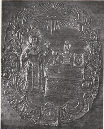 Зображення корогви Ніжинського цеху золотарів із книги "Українське золотарство"