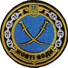Першими нарукавну емблему створили моряки фрегата «Гетьман Сагайдачний». Це була скромна емблема з символом корабля – головою вовка на тлі козацького прапора у вигляді малинового полотнища з жовтим хрестом посередині. Носили її в верхній частині правого передпліччя. Трохи нижче нашивали прямокутник синьо-жовтого кольору з чорним написом «УКРАЇНА» (цікаво, що така стрічка сподобалась і військовослужбовцям інших видів Збройних Сил, тому її стали виготовляти і носити всюди).
