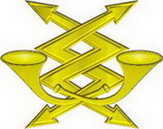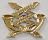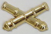 Емблема металева або пластмасова золотавого чи захисного кольору суцільноштампована у формі двох схрещених гарматних стволів.