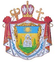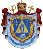Каплеюш, митра, крест, жезл, свѣт, як щиты.