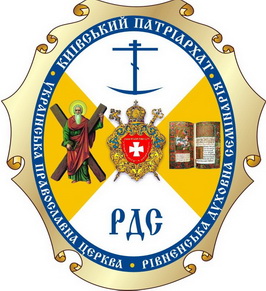 Герб РДС складається із геральдичного щита італійської форми (овальний). Щит чотиридільний або четвертний скошений з двох сторін, в основі якого лежить умовний Андріївський Хрест. Сегменти щита білого і жовтого (золотого ) кольору, що символізують такі християнські чесноти як святість, чистоту, вірність, справедливість, милосердя і упокорювання. На жовтих полях поміщені: з правої сторони герба постать св. ап. Андрія Первозванного, який є небесним покровителем духовної школи; з лівої сторони – сторінки Пересопницького Євангелія (1556 – 1561) – визначна рукописна пам’ятка староукраїнської мови та мистецтва XVI століття (один із перших українських перекладів канонічного тексту Четвероєвангелія, один із символів української нації), поява якої безпосередньо пов’язана із Рівненщиною (с. Пересопниця, Рівненського р-ну), а тому РДС, яка виховує майбутніх пастирів для УПЦ КП, символічно продовжує ту місію, яку свого часу виконував культурно-релігійний освітній осередок у Пересопницькому монастирі. По центрі геральдичного щита розташовано герб Рівненської єпархії УПЦ КП, складовим підрозділом якої і є РДС. На білих полях щита розміщено: зверху восьмиконечний Хрест, як символ хрестоносіння, до якого покликані всі вихованці РДС як майбутні пастирі Церкви Христової. Хрест поєднаний із символом якоря. Якір символізує подвиг духовного рибальства св. ап. Андрія Первозванного, який, покинувши рибальські сіті і послідувавши за Христом, став ловцем людських душ. Нижнє біле поле містить абревіатуру назви духовної школи три великі букви: РДС. (Хрест і абревіатура букв – синього кольору). Геральдичний щит обписує обруч синього кольору, який містить повну назву духовної школи: Рівненська Духовна семінарія Українська Православна Церква Київський Патріархат. Обрамляє даний герб бронзовий орнаментальний картуш.