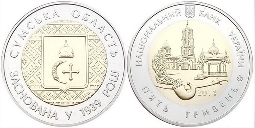 Національний банк України вводить в обіг 28 березня 2014 року пам'ятну монету "70 років Херсонській області" номіналом 5 гривень, присвячену індустріально-аграрному регіону на півдні України, який омивається водами Чорного та Азовського морів. Херсонщина - це унікальні степові заповідники, земля, що має давню історію, край козацької слави, колиска суднобудування.