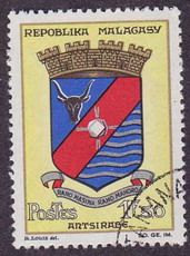 Мадагаскар (Малагасійська республіка). Герби муніципалітетів Амбалавао (1970), Таматаве (1970) та Анцірабе (1963).