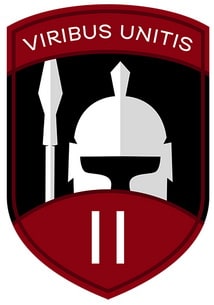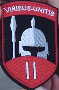 Над воїном-легіонером напис лат. Viribus Unitis, що означає «Об'єднаними силами».