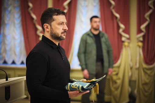 Глава держави вручив командирам підрозділів бойові прапори: 33-й окремій механізованій бригаді, 41-й окремій механізованій бригаді, 44-й окремій механізованій бригаді, 116-й окремій механізованій бригаді 10-го армійського корпусу та 354-му навчальному механізованому полку 169-го навчального центру імені князя Ярослава Мудрого, а також почесні відзнаки «За мужність та відвагу» 3-й окремій штурмовій бригаді та окремій президентській бригаді імені гетьмана Богдана Хмельницького.