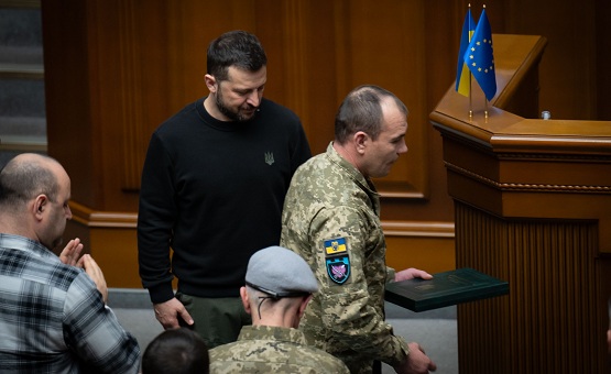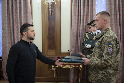 Володимир Зеленський відзначив захисників і захисниць державними нагородами. Зокрема, вручив відзнаку «Хрест бойових заслуг» чотирьом воїнам. Її отримали: