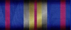 Стрічка до відзнаки муарова шириною 28 мм, синього кольору з поздовжніми жовтими смужками 2 мм по краях. По центру - дві малинові смужки 2 мм на відстані 2 мм одна від одної.