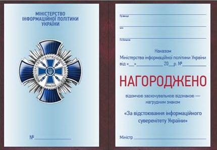 відомчої заохочувальної відзнаки Міністерства інформаційної політики України - нагрудного знака "За відстоювання інформаційного суверенітету України"
