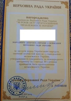 "нагороджено відзнакою Верховної Ради України "30 РОКІВ АКТУ ПРОГОЛОШЕННЯ НЕЗАЛЕЖНОСТІ УКРАЇНИ";