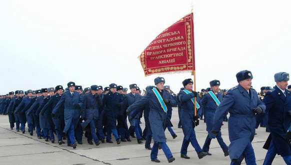 На урочистостях з нагоди вручення регалії, згідно із статутом військових, був присутній представник Президента - заступник глави Секретаріату Президента України, уповноважений Президента України з питань контролю за діяльністю Служби безпеки України Петро Шатковський. Він вручив авіаторам Бойовий прапор та грамоту Президента України. У його слові до військових йшлось про те, що в Україні зараз відбувається процес відродження українського війська і Президент постійно дбає про забезпечення належних умов розвитку Збройних Сил України. «Адже без сильної армії не буде сильної держави», - процитував Президента Петро Шатковський.