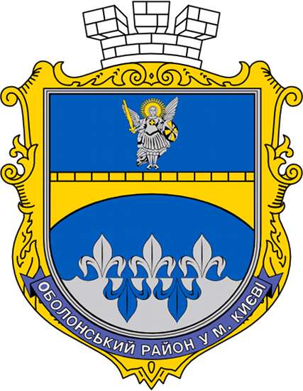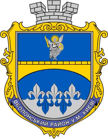 Дякую за поради щодо пропорцій щитів. Повернуся до районної символіки. Герб Оболонського р-ну м.Києва, автори Руденко і Мітченко. Не впевнений, що саме такого архістратига вони зобразили в свій час, однак райрада (згодом і РДА) після перейменування району почала використовувати щось подібне до горильєфного варіанту. Навожу векторизовану версію, прошу зауваження.