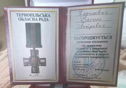 Почесна відзнака Тернопільської обласної ради "За проявлену мужність у виконанні службових обов'язків та незламність у захисті державного суверенітету".