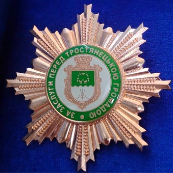Нагородний нагрудний знак (sic!) "За заслуги перед Тростянецькою громадою".
