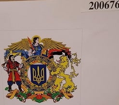3) Проєкт 200676 також із цікавим змістовим і композиційним вирішенням, однак зовсім непотрібним доповненням круглим щитом з дрібним орнаментуванням та невідповідним до подачі інших фігур зображенням лева. Тому робота потребувала б серйозного і змістового, і графічного доопрацювання.