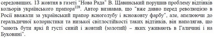 ABG написав:...протягом 1917-1918 рр. в київських газетах жодних дискусій про порядок кольорів на прапорі не було (лише одна замітка про те, що варто вживати синій відтінок, бо блакитний вигорає швидко на сонці)...