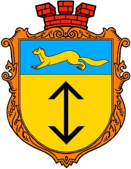 Герб: у золотому полі чорна стріла у стовп, з вістрями на обох кінцях, у синій главі біжить золота куниця.