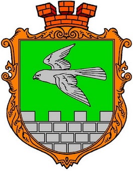 Герб: у зеленому полі над срібною зубчастою мурованою основою летить срібний сокіл.