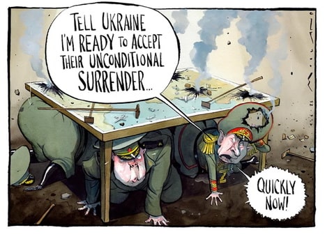 Новое от Алеши Ступина. Для тех украинцев, которые не очень любят Зеленского, Алеша Ступин мог бы, конечно, нарисовать Порошенко, но на встречу с Трампом поехал президент Зеленский. В данной картинке он олицетворяет Украину, которая смотрит как бы с иронией и сарказмом на весь