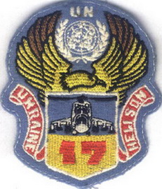 Під керівництвом заступника командира батальйону з виховної роботи було підготовлено біля 13-ти варіантів нарукавного знаку. Остаточне його доопрацювання провів З.Галишинець, фахівець фірми “Юля”, яка взялася за виготовлення символіки. В результаті вийшов досить цікавий нарукавний знак (мал. 1). На жаль, з вини командування батальйону в ньому була зроблена помилка в абревіатурі миротворчої місіїї ООН у Сьєрра-Леоне (замість UNAMSIL на емблемі маємо UNOMSIL).