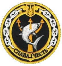 Першими нарукавну емблему створили моряки фрегата «Гетьман Сагайдачний». Це була скромна емблема з символом корабля – головою вовка на тлі козацького прапора у вигляді малинового полотнища з жовтим хрестом посередині. Носили її в верхній частині правого передпліччя. Трохи нижче нашивали прямокутник синьо-жовтого кольору з чорним написом «УКРАЇНА» (цікаво, що така стрічка сподобалась і військовослужбовцям інших видів Збройних Сил, тому її стали виготовляти і носити всюди).