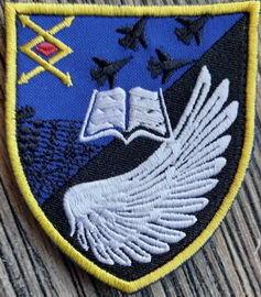 Зображення на щиті емблеми вказують на авіаційний, розвідувальний та протиповітряний напрямки підготовки.