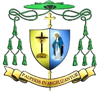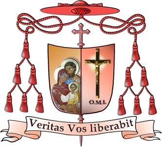 Мотто герба «In Iesu Christo» («В Ісусі Христі») розміщено на стрічці під щитом.