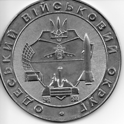 От знайшов знак, на звороті викарбувана емблема Одеського військового округу. Зараз шукаю точні кольори, але памятається мені, що щит розтятий на лазур і золото, і всі інші фігури - золоті.