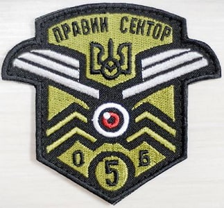 На шевроні для морських диверсантів є образ "морського лева" - міфічної істоти із геральдичного бестіарію. На противагу цьому шеврону – нашивка для підрозділу аеророзвідки "Правого сектору" – абсолютно футуристичне зображення комахи-робота, яка уособлює високотехнологічний арсенал інструментів сучасної розвідки. Подібного ефекту автор намагався досягнути в роботі для служби аеророзвідки "Айдару", використавши їх стандартний символ – сову. Є й шеврон із вовком.