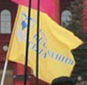 В середині верхньої половини вертикальної полоси розміщена емблема ПВС.