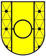 В золотому полі чорне вузьке кільце поміж двох з наскрізних відділених та перетято-ромбовидно поділених чорним боковиків. Кільце сполучається з боковиками двома покладеними у балку чорними смугами. У перетинах ліній, якими поділені боковики, чорні малі кружки.