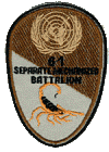 Найменування батальйону подане абревіатурою англійських літер його повної назви і номером. Один варіант зроблено на чорному тлі, інший - на блакитному (кольорі ООН).